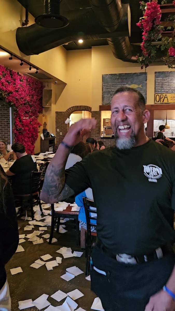 While visiting Orlando while my wife attended a work function, we thought that this sounded like a place we would enjoy. We were right! What a fun restaurant. It was a short distance from our hotel and the valet parking made it easy for us, since the parking here can be challenging for out of towners. Service was great and our drink orders were taken with in a couple of minutes of our seating. All of our questions were answered and I opted for Avgolemono soup and the octopus appetizer for my meal, my wife enjoyed the salmon entree. Both orders had generous portions and cooked to perfection. We were surprised at the entertainment, since we were not expecting anything. They had several dancers that entertained weaving around the tables and more than once there was a line of dancers and patrons participating. The Greek twist on familiar drinks was a welcome change as well. This will most certainly be on our list of places to come back to on our next visit to the area. Thank you for a fun entertaining, delicious evening.
