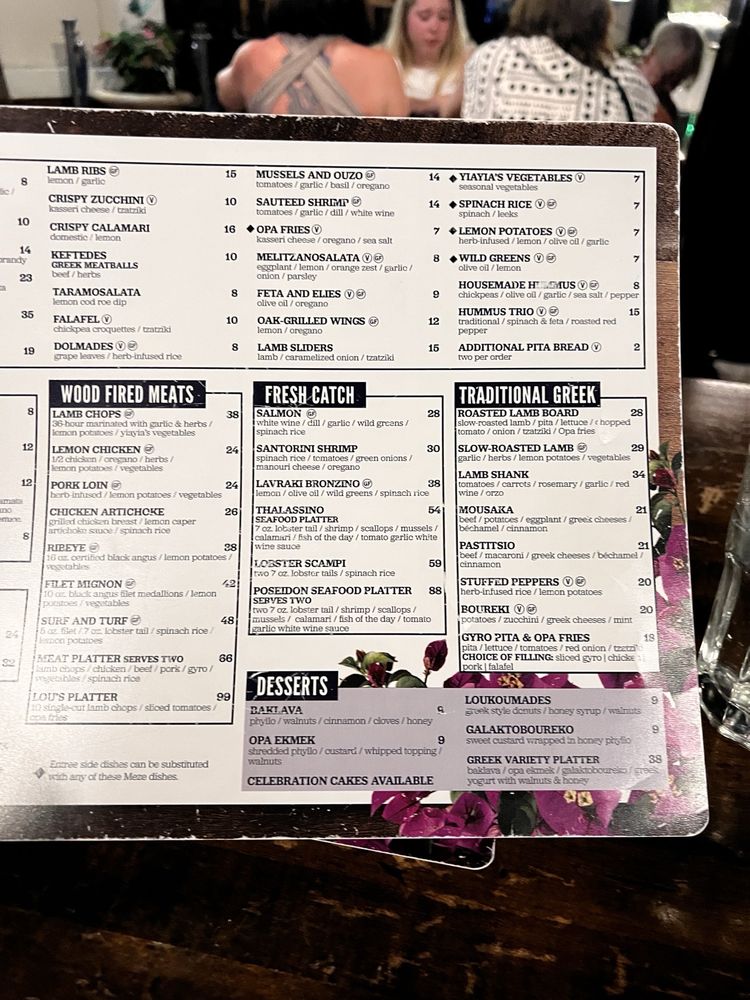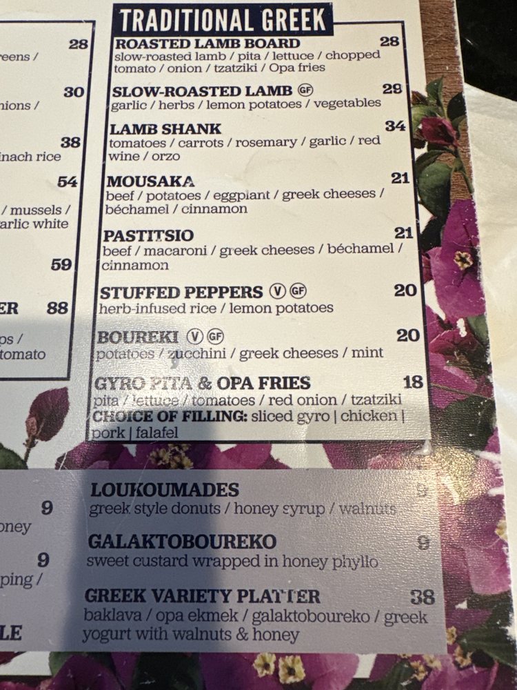 Slow-roasted lamb, pita, lettuce, chopped tomato, onion, tzatziki, Opa fries.